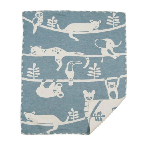 De Siesta kinderdeken is een knusse deken van heerlijk materiaal van het Zweedse merk Klippan Yllefabrik. De deken heeft een praktisch formaat, is geschikt voor zowel kleine als grote kinderen en kan vrijwel overal voor gebruikt worden. Een comfortabele deken voor in de auto of voor in de kinderwagen. De deken is versierd met leuke dieren en perfect als baby- of speeldeken. Dankzij het eenvoudige en stijlvolle design en de twee kleurencombinaties is de deken ook perfect als decoratie op de armleuning van de bank of een fauteuil.